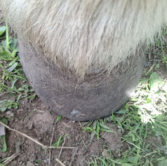 As you can see, he has poor very quality hoof horn which we suspect will chip and split whilst self-trimming with increased movement and the absence of shoes.